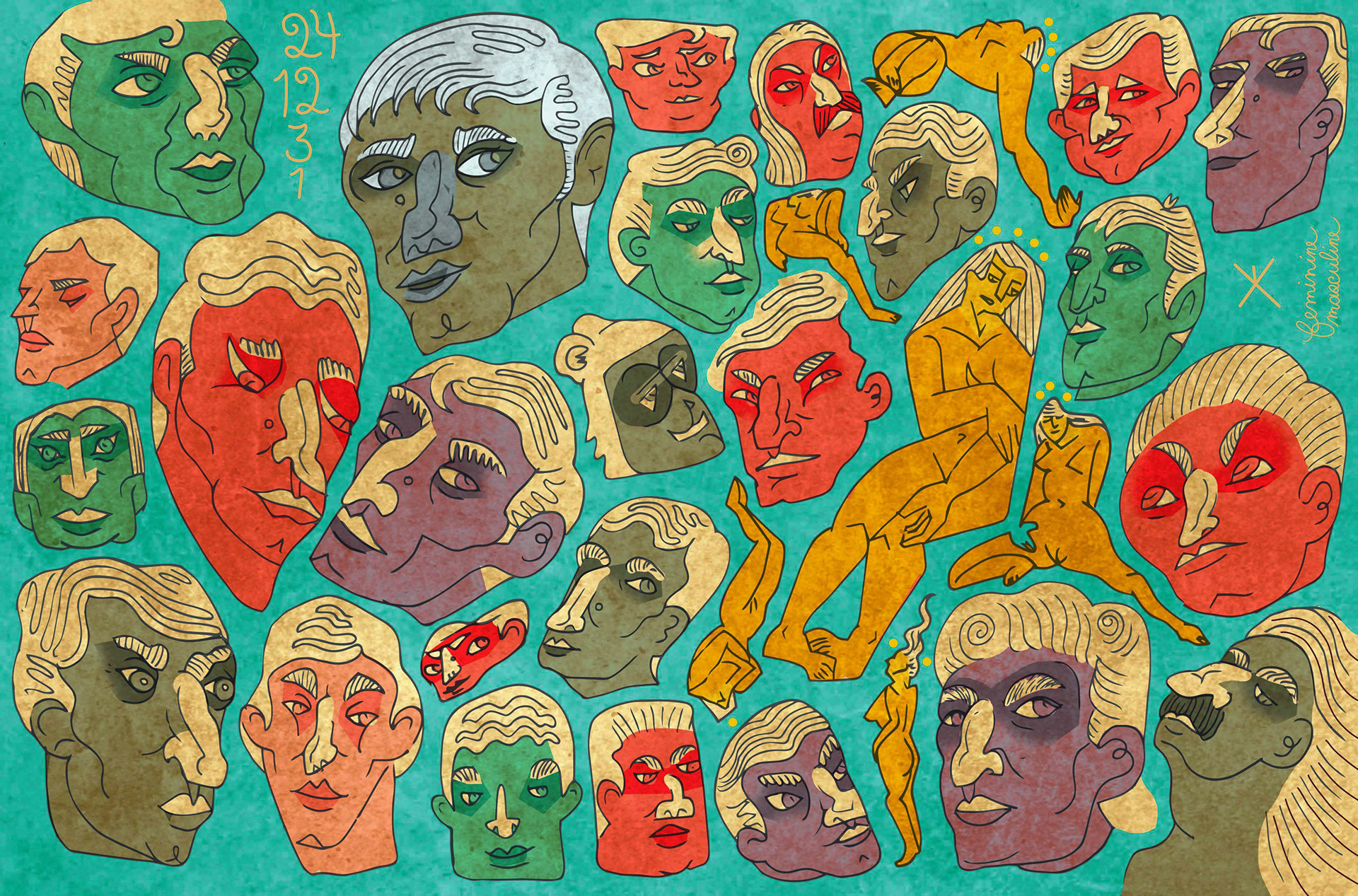 Es entonces cuando el ojo interviene, buscando significado donde antes solo había desorden. Como si siempre hubieran estado ahí, las figuras comienzan a emerger del laberinto de líneas. Cuerpos desnudos, entrelazados en una danza silenciosa, atrapados en una dimensión que solo existe cuando alguien logra verla. La tinta los rescata, definiendo los contornos de su existencia.